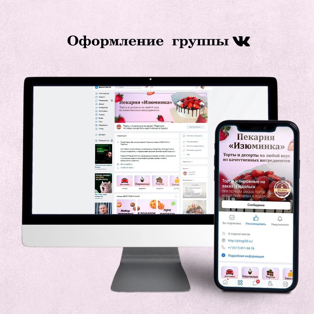 Посмотрите некоторые примеры оформления сообщества у меня на сайте. Я оформляю Ваше сообщество уже с потенциалом на продажи и заявки. Успехов в бизнесе.